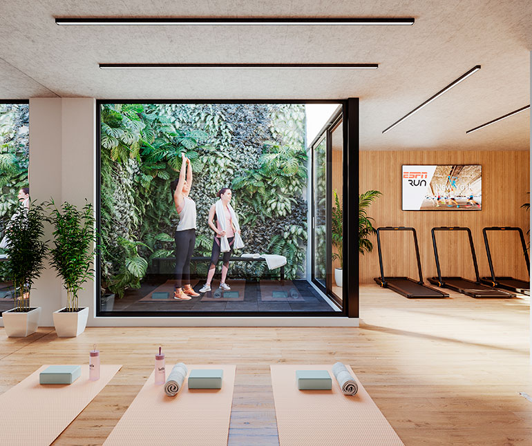 El parrillero pergolado del último piso tiene como principal atractivo la increíble vista 360º al skyline de Montevideo. Para que no tengas que volver a salir, pensamos un espacio con patio abierto, donde vas a poder entrenar con máquinas de última generación.